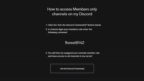 You will then be assigned your tutorials member role and have access to all channels in my server!