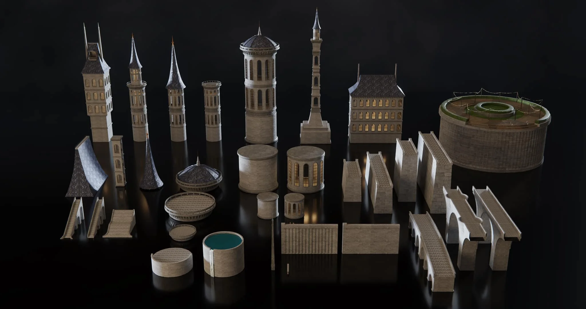 I added an blend file called "Asset Pack Final" which has all the assets set out like this.